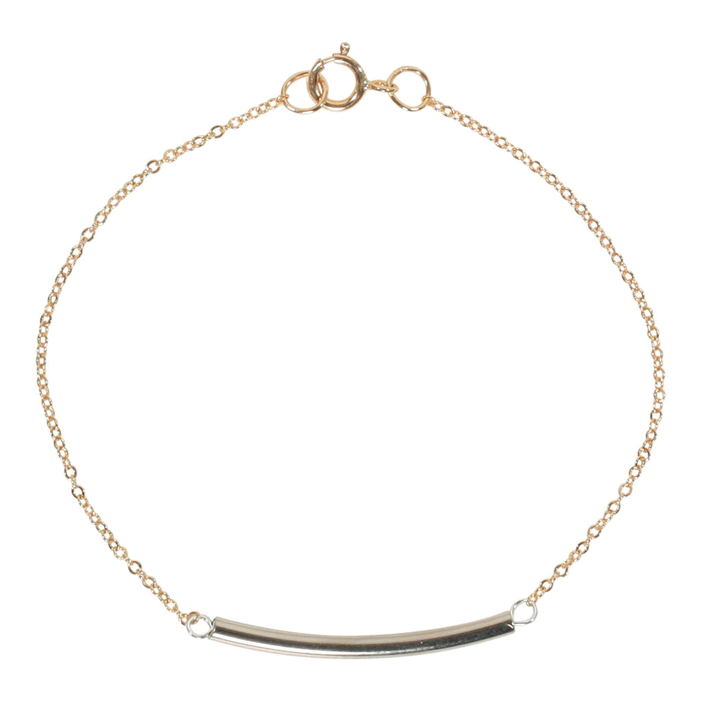 • SALE - Curved Tube Bracelet - Silver Tube/ Gold Chain - Bracelets - Ofina
