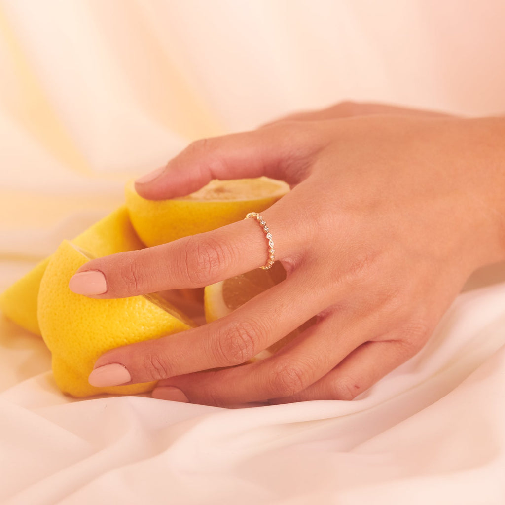 Alternating marquise and diamond shape band with tiny clear sparkly stones.