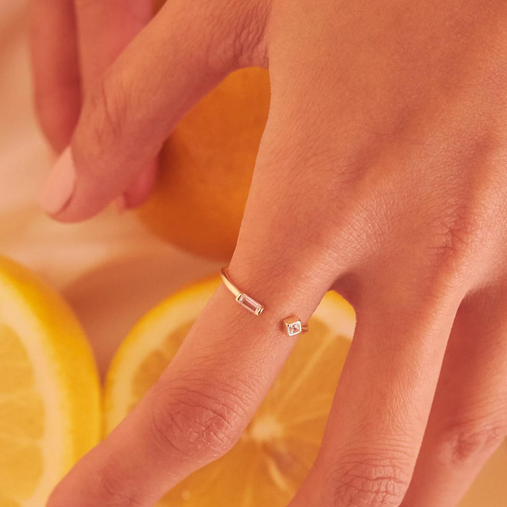 SALE - CZ / Baguette Diamond Open Band Ring $ 29.00 Was $ 45.00 Gold / 5 - $ 29.00 Gold / 6 - $ 29.00 Gold / 7 - $ 29.00 Gold / 8 - $ 29.00 Silver / 5 - $ 29.00 Silver / 6 - $ 29.00 Silver / 7 - $ 29.00 Silver / 8 - $ 29.00 Quantity This variant is currently sold out. Designer: OFINA A super fun unique ring with a baguette and a square diamond shape stone. The open feature makes the ring adjustable! Sizes: 5-8 Material & Care Gold Vermeil, Sterling Silver Stones: Cubic Zirconia Hypoallergenic For more info: Jewelry Care How to Wear Wear alone or stacked