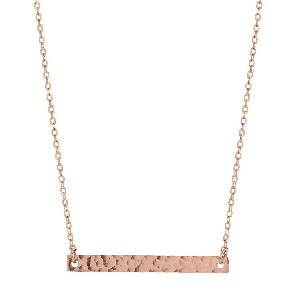 A simple thin bar necklace available in a hammered and a smooth finish.