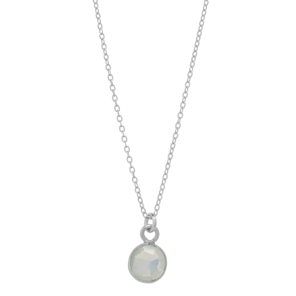 • SALE - Tiny Bezel Stone Necklace (more colors) - Silver / Opal - Necklaces - Ofina