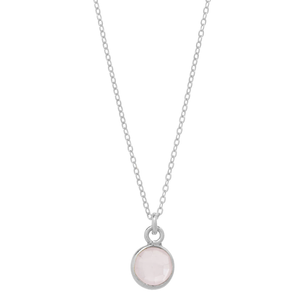 • SALE - Tiny Bezel Stone Necklace (more colors) - Silver / Rose Quartz - Necklaces - Ofina