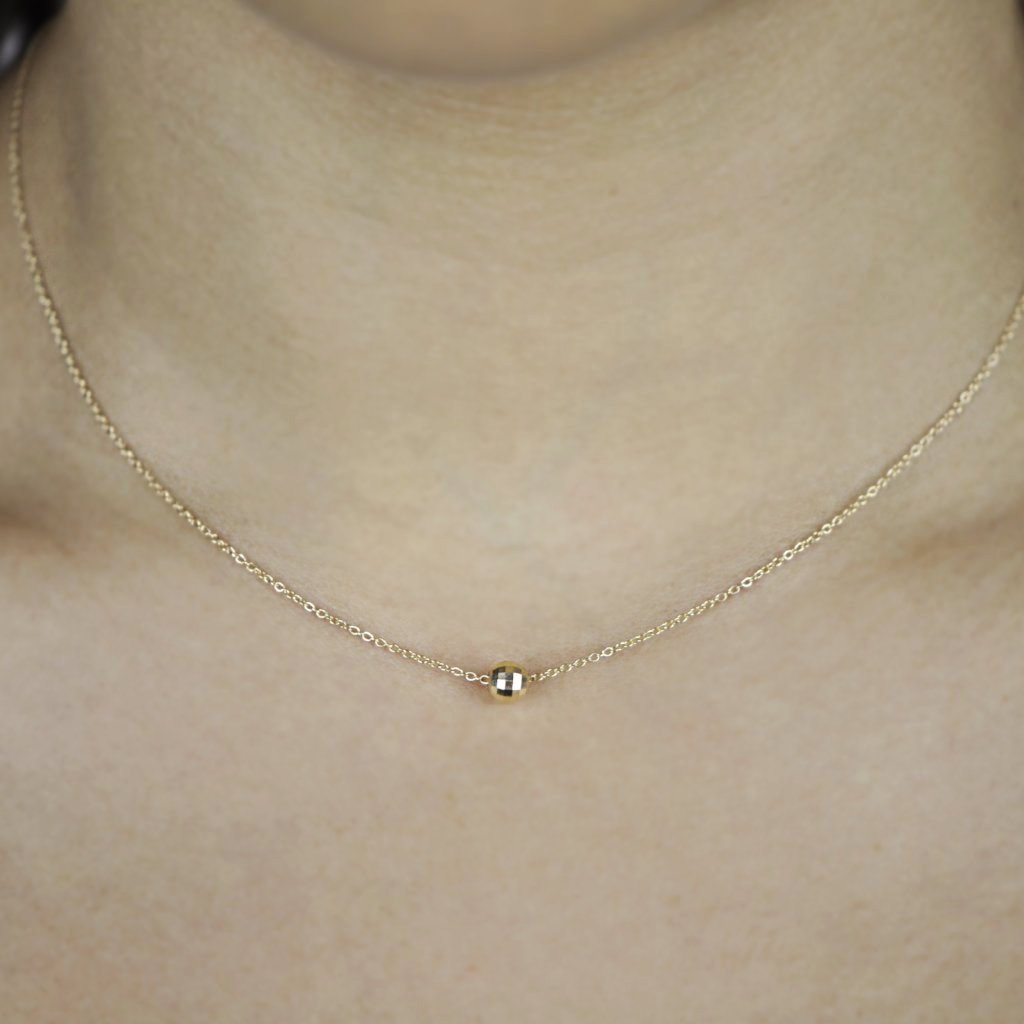 SALE - Solid Gold Faceted Mirror Ball Necklace $ 150.00 Was $ 212.00 Yellow Gold - $ 150.00 Rose Gold - $ 150.00 White Gold Ball / Yellow Gold Chain - $ 150.00 White Gold - $ 150.00 Quantity This variant is currently sold out. OFINA 14k Yellow Gold, Rose Gold, White Gold Ball: 4mm x 4mm Length: 16 inches